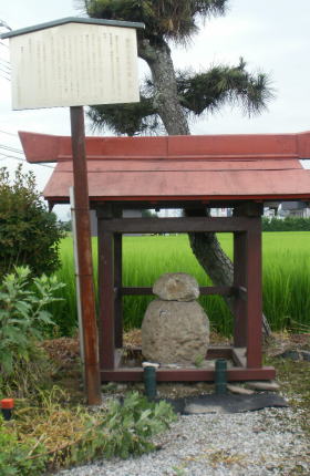 | 「吉次が墓」は壬生から日光西街道を鹿沼方面へ向かう途中にあるのだが、壬生の街中を抜けると街道沿いの人家も少なくなり一寸判りにくい。 My自転車で走行途中にあちこと尋ねてついに辿りつくことが出来た。 「上稲葉」交差点の近くに在った。 |