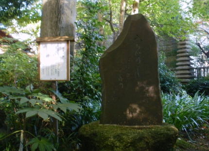 | お寺の境内の木陰に笠塚碑はあります。 |