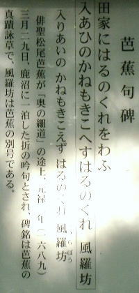 | 句碑の隣には解説板が立って、そこに書いてある一部分です。 |