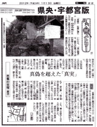| 「曽良日記にある芭蕉の鹿沼一泊が何処なのか」と、気になっていた時に芭蕉の笠塚があるのを知った。 紅葉の時期を狙って早朝の輝くもみじを期待し、石段を登り辿りついたところに笠塚ともみじの木はあったがまだ紅葉には早かった。 この笠塚の説明板を読んで「この光太寺が一泊の!」と感激。さらに、お寺の方に貴重な資料(下野新聞)を頂きました。 感謝です。 |