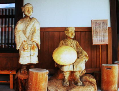 | ここの芭蕉と曽良はチェ-ンソ-・カ-ビングで作成された珍しい像です。 |