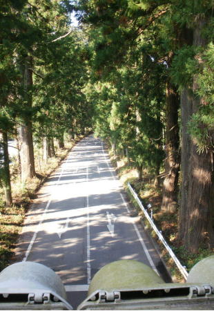 | My自転車で走行しながらカメラに納めるには一寸ばかり危険を伴ってしまうので、良いアングルを探していたら歩道橋を見つけました。 橋の上から日光方面です。 |