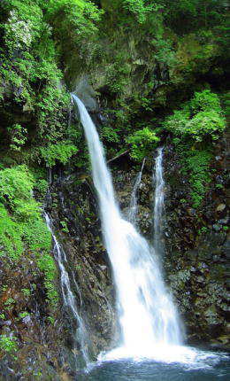 | 一 四月朔日 前夜ヨリ小雨降。辰上尅、宿ヲ出。止テハ折々小雨ス。終日曇、午ノ尅、日光ヘ着。雨止。 清水寺ノ書、養源院ヘ届。大樂院ヘ使僧ヲ被添。折節大樂院客有之、未ノ下尅迄待テ御宮拝見。 終テ其夜日光上鉢石町五左衛門ト云者ノ方ニ宿。 壱五弐四。 一 同二日 天気快晴。辰ノ中尅、宿ヲ出。ウラ見ノ滝(一リ程西北)・ガンマンガ淵見巡、漸ク及午。 鉢石ヲ立、奈(那)須・太田原ヘ趣。常ニハ今市ヘ戻リテ大渡リト云所ヘカゝルト云ドモ、五左