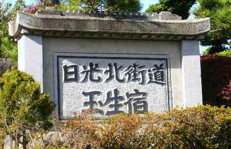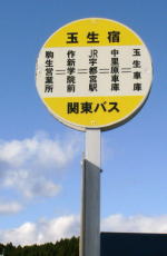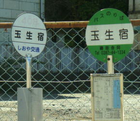 | 玉入宿の町中(現・塩谷町 )を探索してみたところ、民家の石垣の上に「玉入宿」と彫込まれた創作物を発見しました。 また、交通手段の路線バスは3ルートありましたが、いずれも本数は少なく自家用車が主流のようです。 |