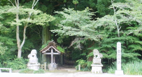 | 小さな峠の南側に関東の「境の明神」が林を一寸外れた場所にあり、那須町指定の標柱と説明板 がある。この十数メートル北側の峠のほぼ頂きあたりに、奥州の「境の明神」が木立に覆われて祀られていた。こちらには白河市の説明板が掲げられている。 このH24.06.19に参拝に訪れたのだが、奥州側の境の明神に石段とか境内の灯篭などに異変を感じ、御近所の方に伺ってみたら 「この神社は昨年の大震災で大変な被害を被り、石垣は通りの反対側まで崩れ、ようく参拝できるところまで修復したが、まだまだ復旧に時間がかかりそう」とのことであり、鳥居の支柱にはまだ立ち入り禁止の黄色いテープの一端が結ばれて残っていました。 |