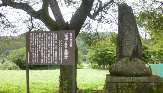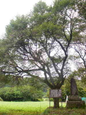 小坂也。これヨリ白坂ヘ十町程有。古関を尋て白坂ノ町ノ入口ヨリ右ヘ切レテ旗宿 ヘ行。廿日之晩泊ル。 暮前ヨリ小雨降ル。(旗ノ宿ノハヅレニ庄司モドシト云テ、畑ノ中桜木有。判官ヲ