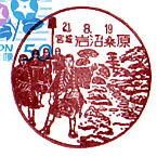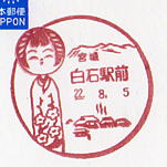 刈田郡之内)トノ堺有。左ノ方、石ヲ重テ有。大仏石ト云由。さい川ヨリ十町程前ニ 、万ギ沼・万ギ山有。ソノ下ノ道、アブミコワシト云岩有。 二町程下リテ右ノ方ニ次信・忠信ガ妻ノ御影堂有。 同晩、白石ニ宿ス。 一二三五