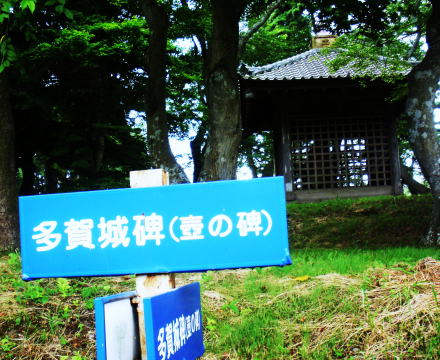 | 句碑は多賀城碑(壺の碑)を 囲った覆堂の奥の方にあります。 |