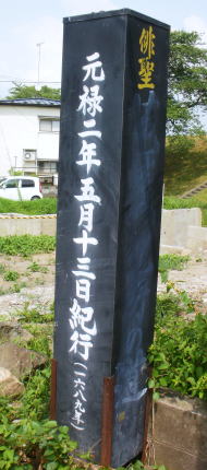 | ←街中で配志和神社に句碑があるとの情報を得て走行中に、「芭蕉紀行の道」の道標がありましたが、側面の字がかすれてよく読めません。 (悪戯で消したのでしょうか? 残念なことです) |