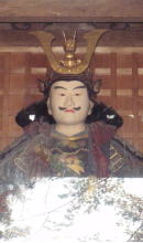 | この地は源頼朝に追われ、藤原秀衡を頼って平泉に逃れた義経が、最期を遂げ た居館のあった場所とされていて、堂内に甲冑を着けその上に衣を纏り、鼻下に髭を蓄えている義経像がある。 |