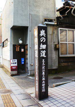 | 芭蕉が逗留した不玉亭跡の近くにこの「鐙屋」がある。 曾良日記にも奥の細道にも記載されていないが、解説板には「酒田三十六人衆を代表する商家と記され、井原西鶴の『日本永代蔵』に北国一番の米商として鐙屋の名があげられている云々…」と記載される。 今回、鐙屋の前に佇んでカメラ構えていたときに丁度開館時間になって邸内を一寸だけ拝見することができた、建物も重厚であり、次回にはじっくりと拝観したいものです。 |