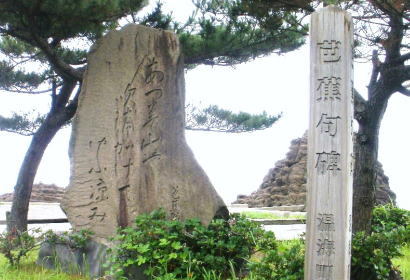 芭蕉の句碑を探訪の後、この塩俵岩を見にいった。