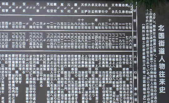 | この「北国街道往来人物史」のなかに1689年「松尾芭蕉翁 来泊す」と記されている個所 がみられる。 |
