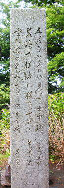 | 句碑はJR高田駅から約3.2㌔、金谷山スキー場近くの「金谷楼(対米館) 」の手前、石段を上がったところにありましが、一寸判り難いので宿の方に教わってしましました。 |