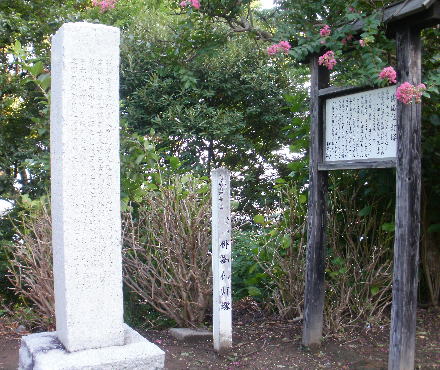 | この妙福寺の境内に「俳偕伝灯塚」がある。 句碑と説明書きを一枚の写真におさめたが、自分的に納得ず細工してしまいました。 又、境内に旧碑があるのですが、まったく判読できませんでした。 |