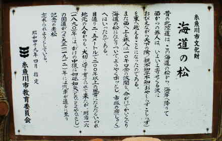 | 天下の険「親不知」と芭蕉句碑と海道の松。 |